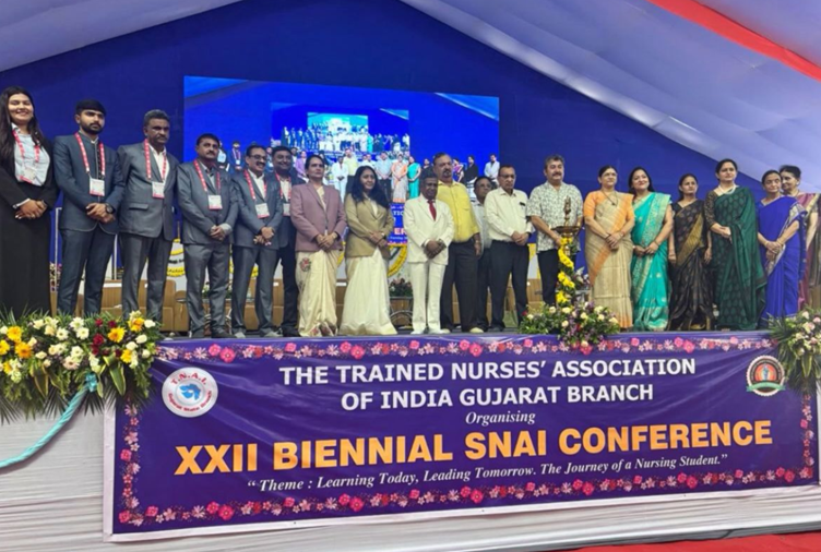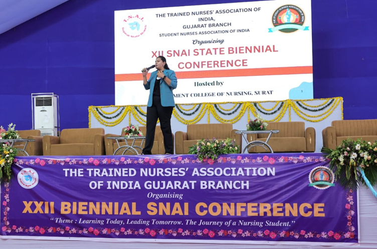 The XXII Biennial State Conference of the Student Nurses Association of India (SNAI), hosted under the umbrella of the Trained Nurses’ Association of India (TNAI), Gujarat Branch, was held with grandeur on the 17th and 18th of July at BRG Hotel, Statue of Unity (SOU), Ektanagar. This two-day event was organized around the theme “Lead the Change: Student Nurses as Trailblazers in Healthcare”, a message that resonated throughout every session, competition, and performance. Ms. Chelsea Parmar from our college was the state SNAI Chairperson, and hence she played a vital role in orgnaising the conference along with the host branch and TNAI. The conference was graced by 21 dignitaries, including Members of Legislative Assembly (MLAs), and esteemed representatives from the Indian Nursing Council (INC), Gujarat Nursing Council (GNC), and TNAI. These respected leaders inspired the attendees with their presence and motivating speeches.
